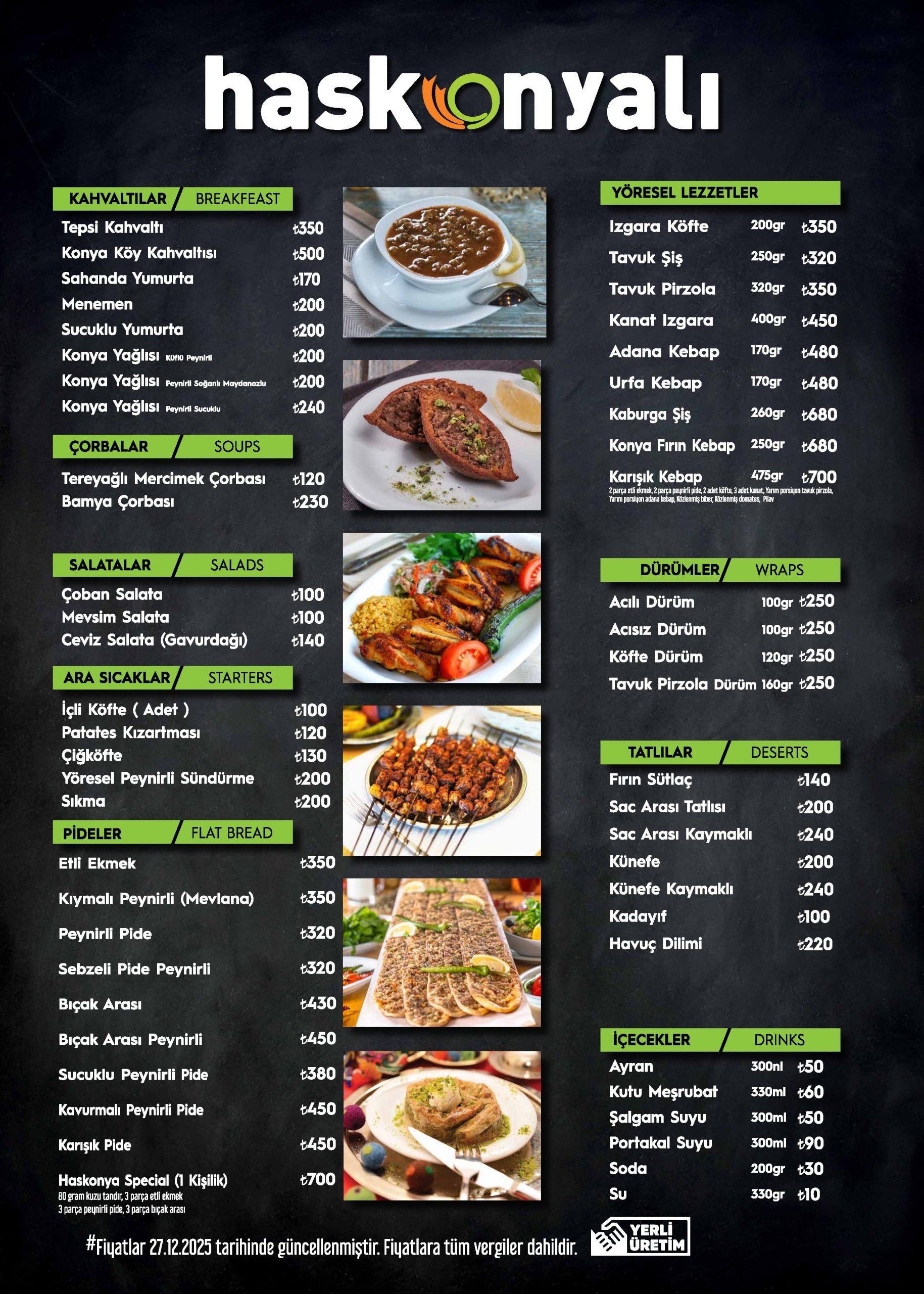 Has Konya Mutfağı olarak yüzyıllar öncesine dayanan Konya Mutfak Geleneğini İstanbul’un Avrupa yakasında aslına uygun pişirme yöntemleri ile damak tadınıza en uygun şekilde sizlere sunuyoruz. Bamya Çorbası, Etli Ekmek, Bıçak Arası, Tirit Kebabı, Fırın Kebap, Sündürme, Sac Arası…gibi lezzetleri tatmanız için sizi mutfağımıza bekliyoruz.